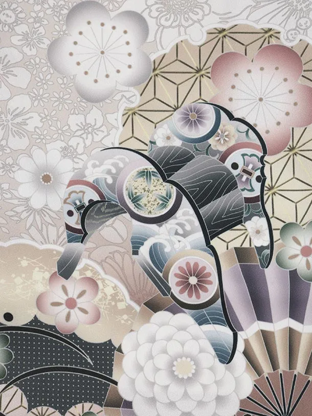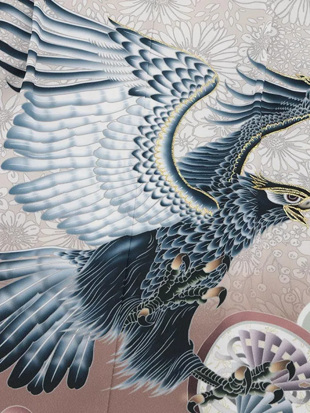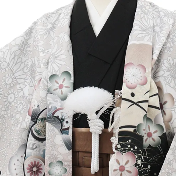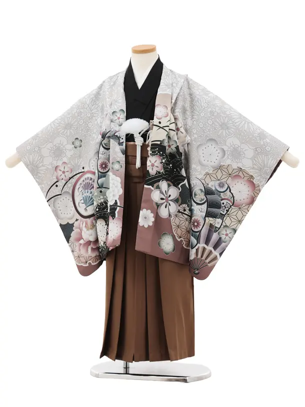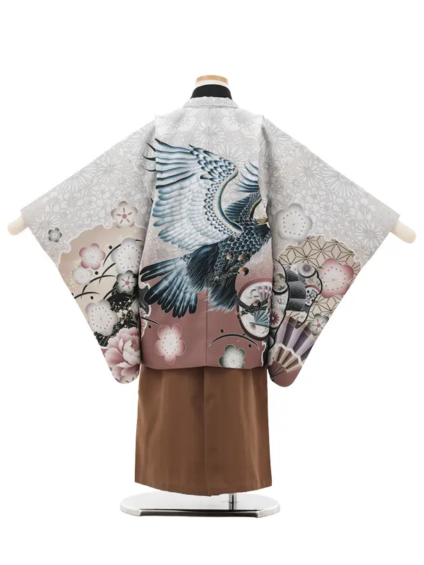 かんたん七五三(5歳男袴)X798 ベージュ梅花に鷹×モカブラウン