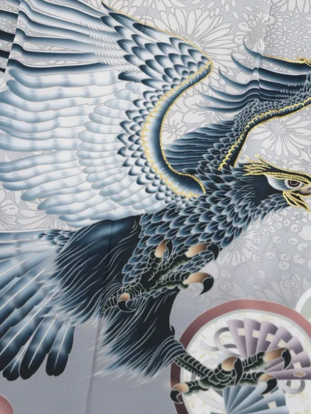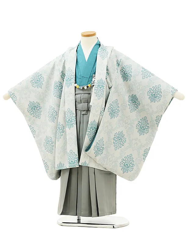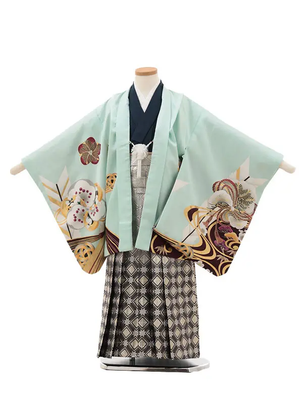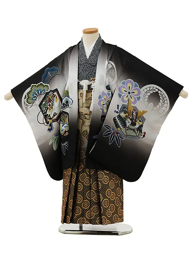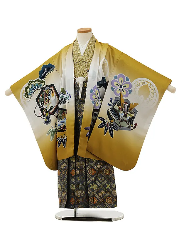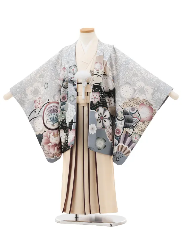 かんたん七五三(5歳男袴)X799 グレー梅花に鷹×クリームベージュ