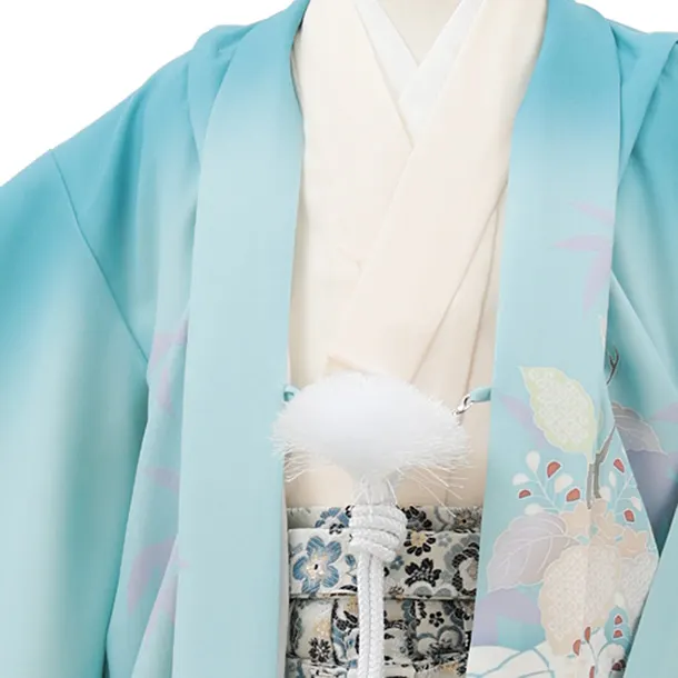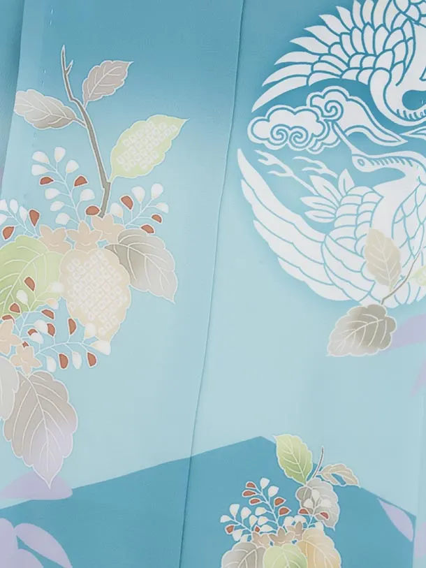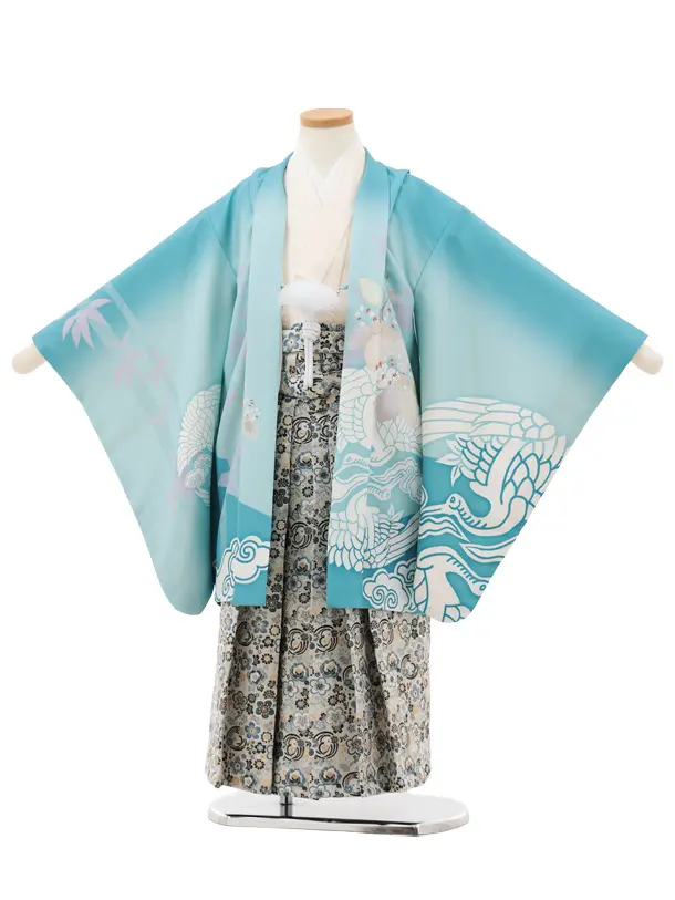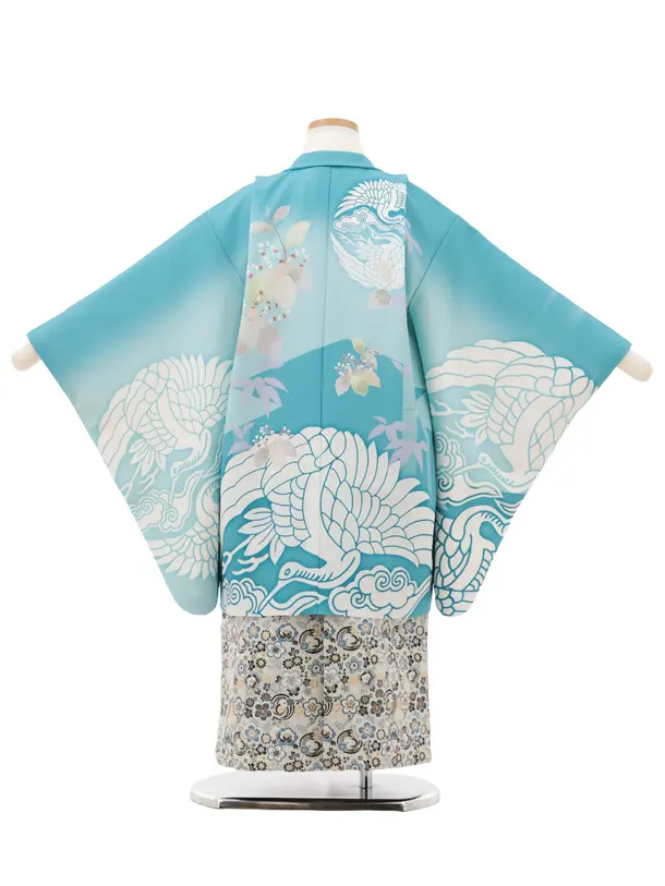 かんたん七五三(5歳男袴)X800 水色ぼかし鶴に桐×ベージュ梅