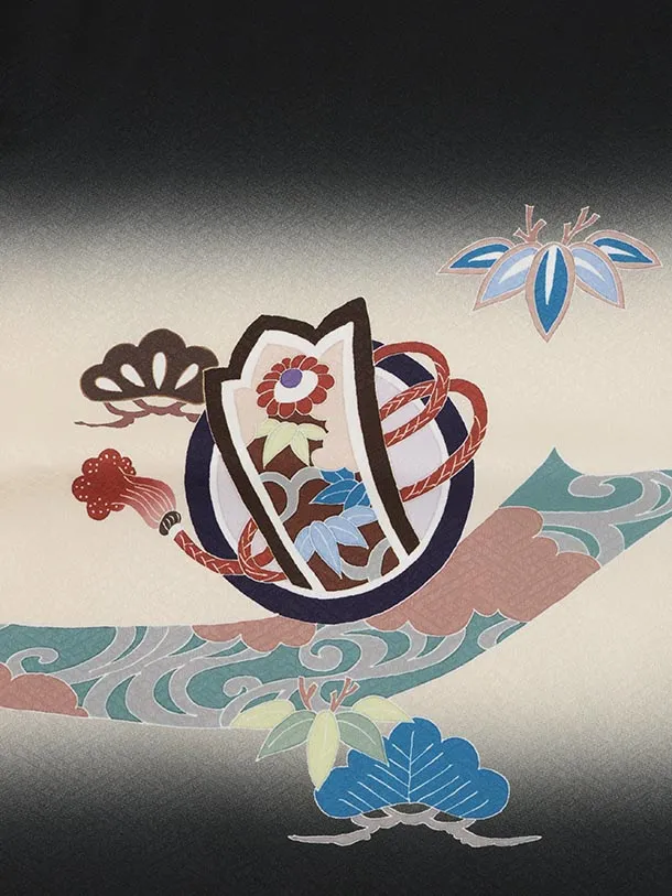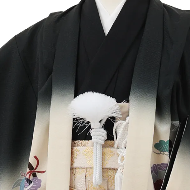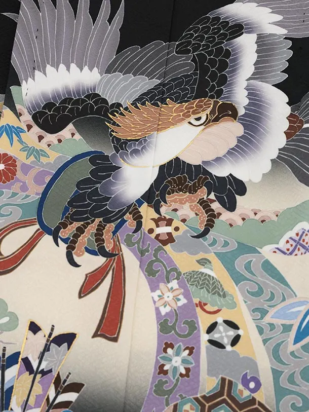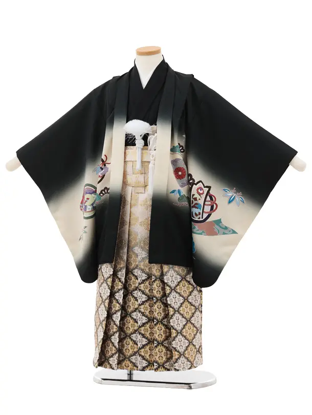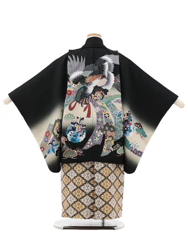 かんたん七五三(5歳男袴)X802 黒地 束ね熨斗に鷹×ベージュ黒ぼかし