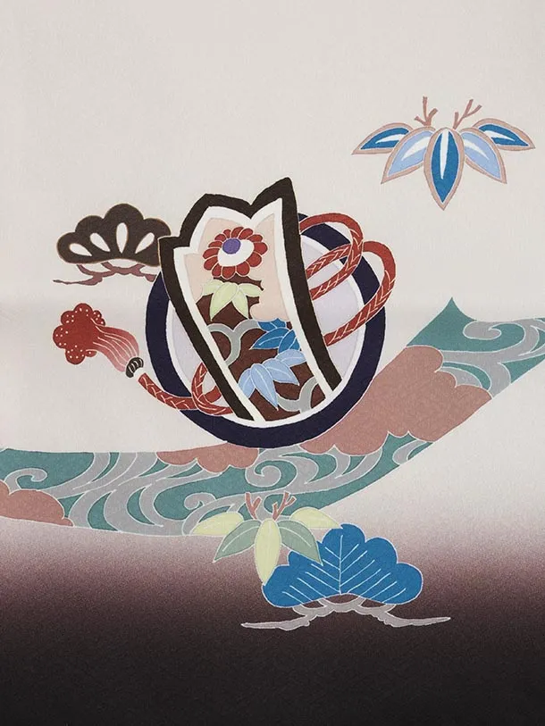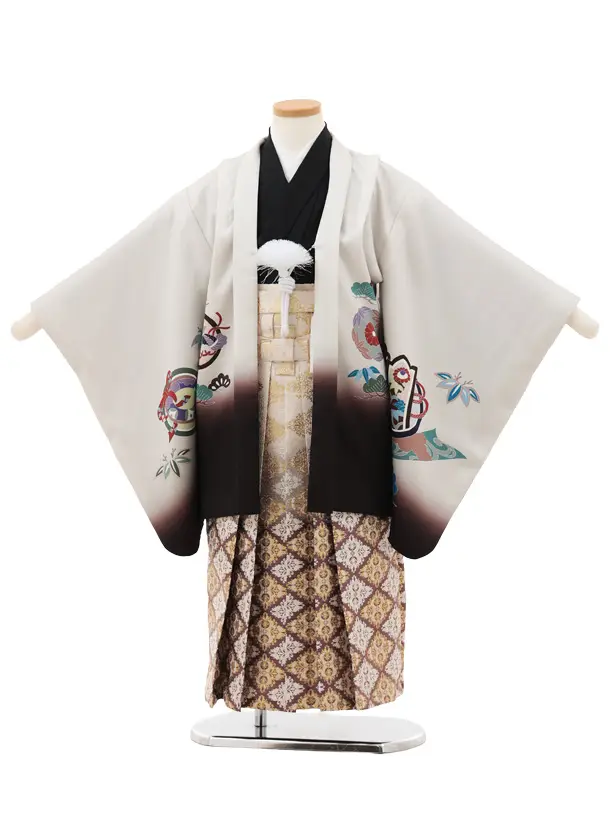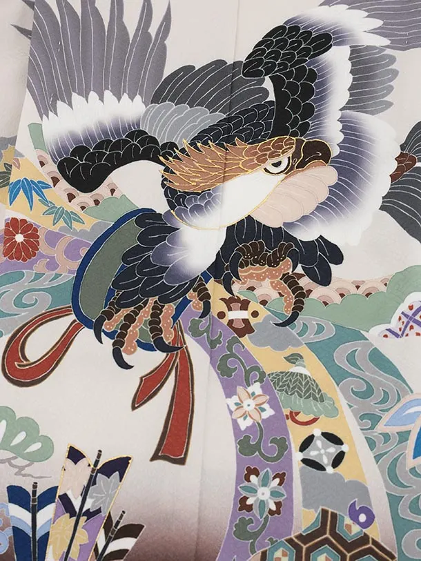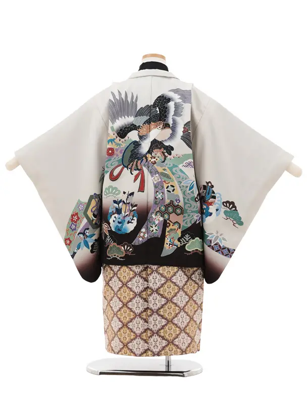 かんたん七五三(5歳男袴)X805 ベージュ 束ね熨斗に鷹×ベージュ茶ぼかし
