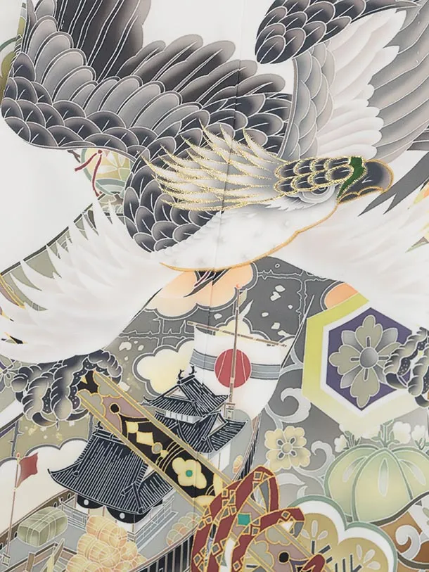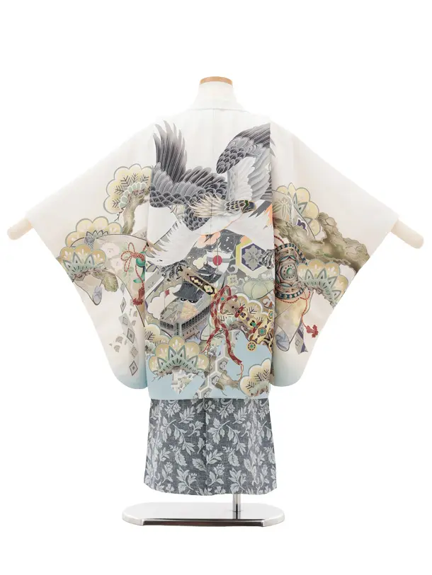 かんたん七五三(5歳男袴)X809 白武具に鷹×ブルーグレー