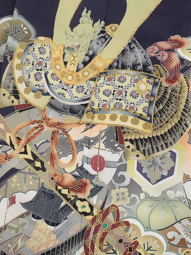 かんたん七五三(5歳男袴)X811 パープルグレー武具に兜×グレー