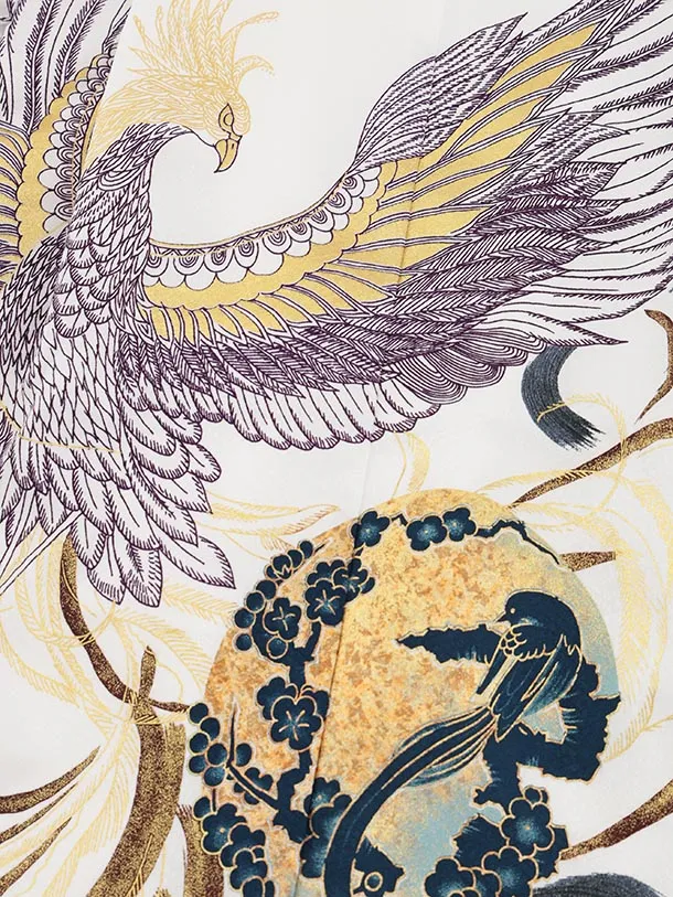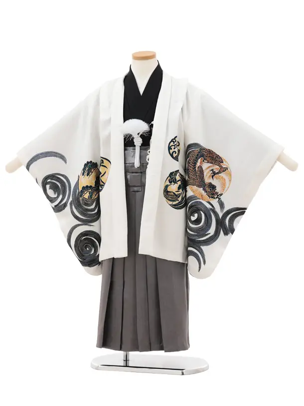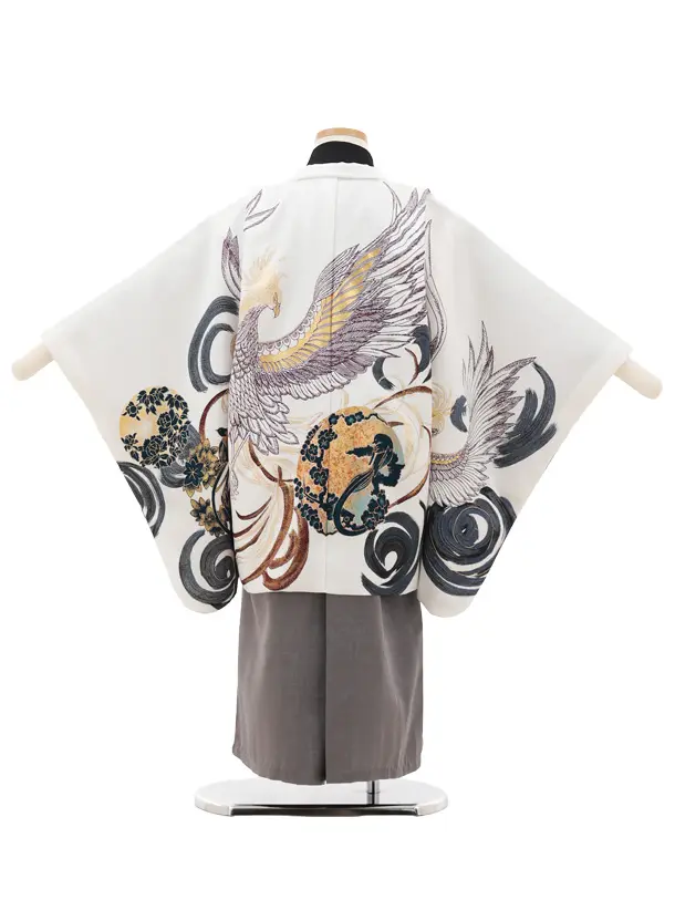 かんたん七五三(5歳男袴)X814 白地 渦に鳳凰×パープルグレー
