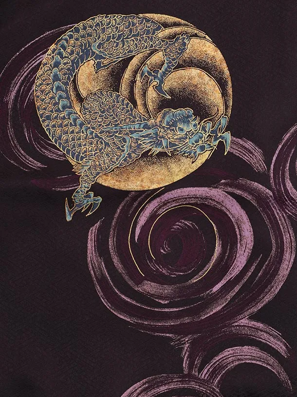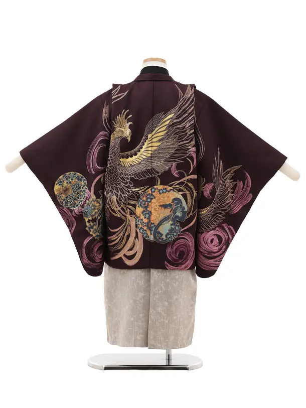 かんたん七五三(5歳男袴)X815 ブラウンパープル 渦に鳳凰×グレー