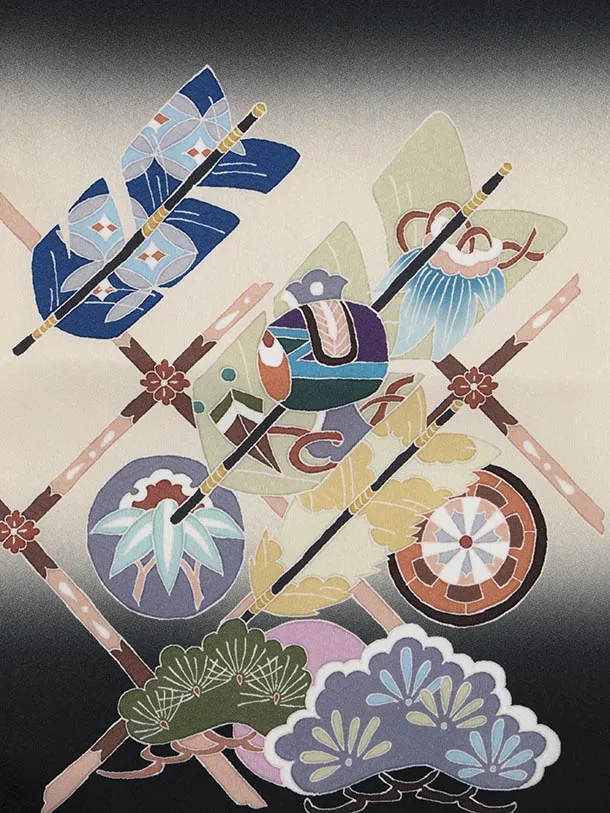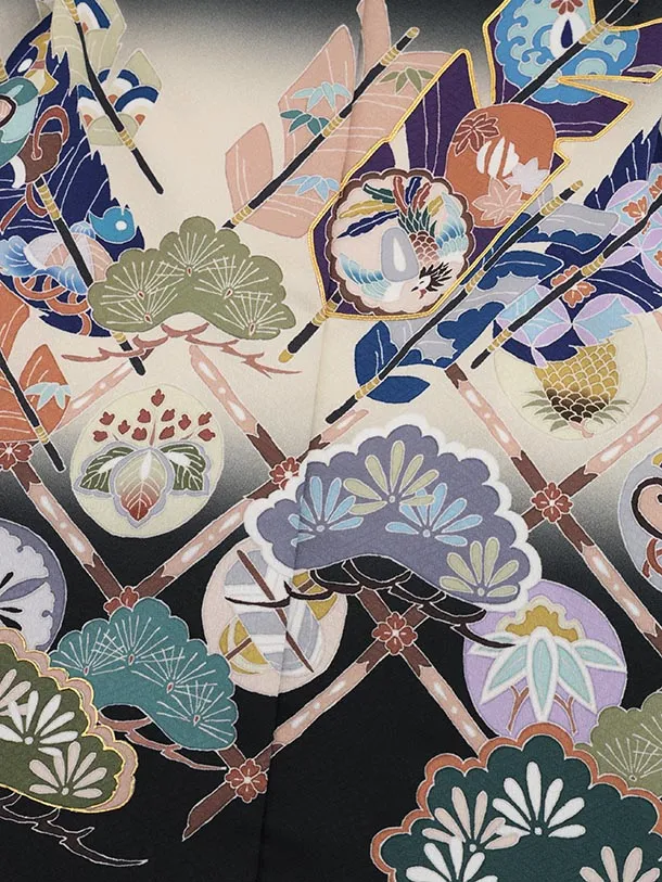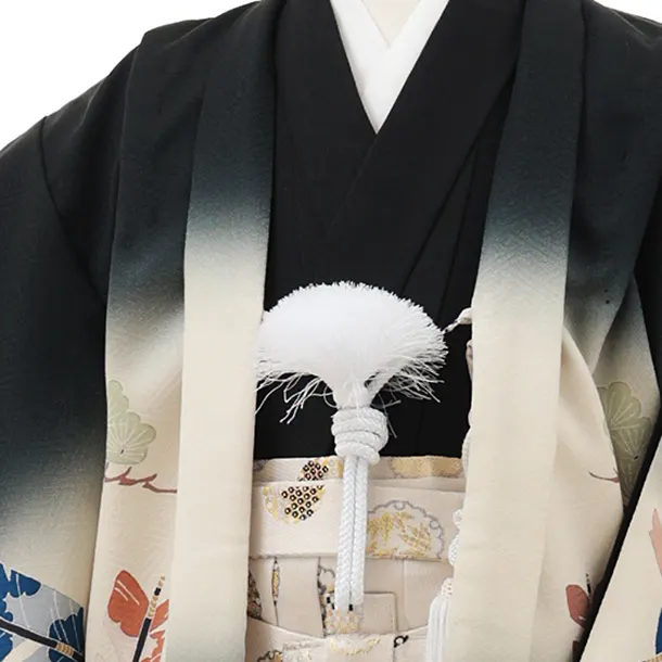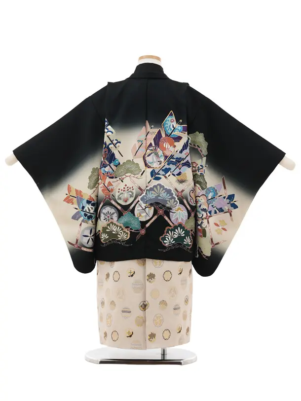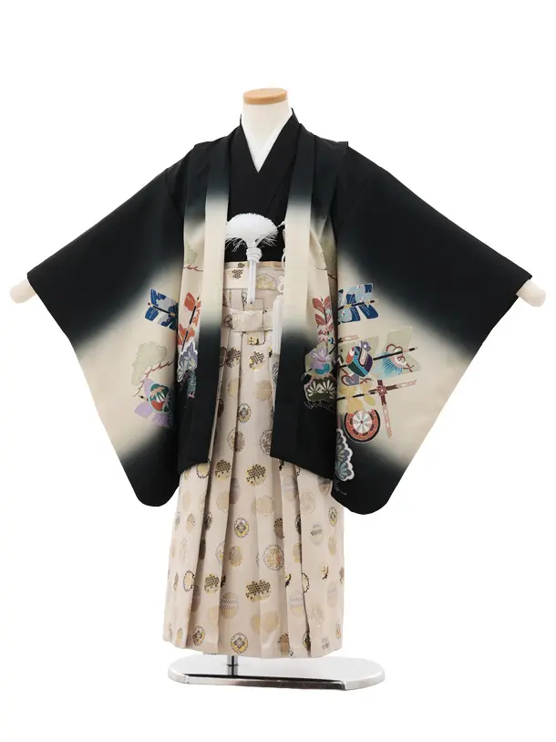 かんたん七五三(5歳男袴)X819 黒 吉祥文様 矢羽根×ベージュ雪輪