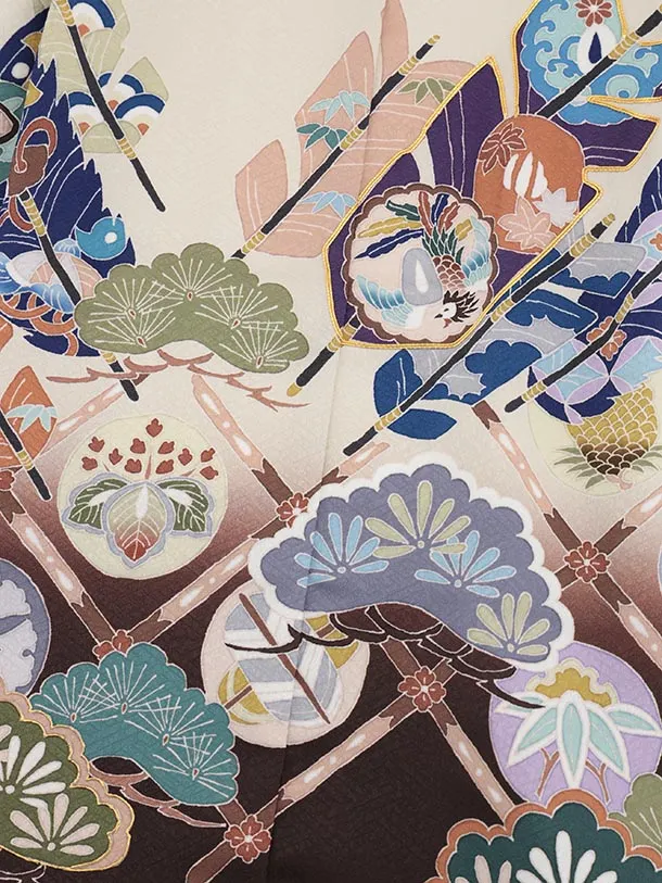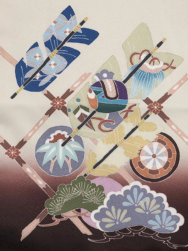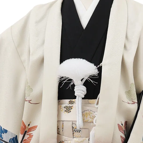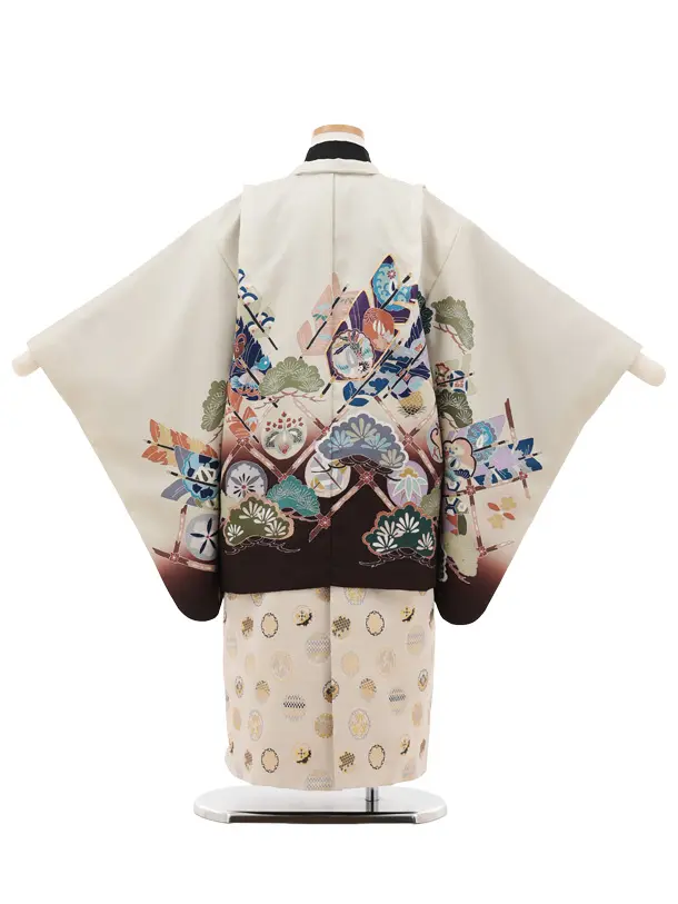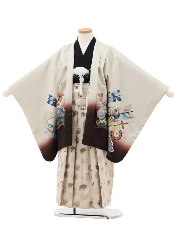 かんたん七五三(5歳男袴)X820 ベージュ 吉祥文様 矢羽根×ベージュ雪輪