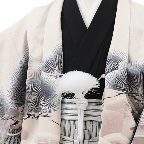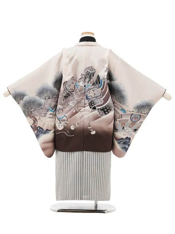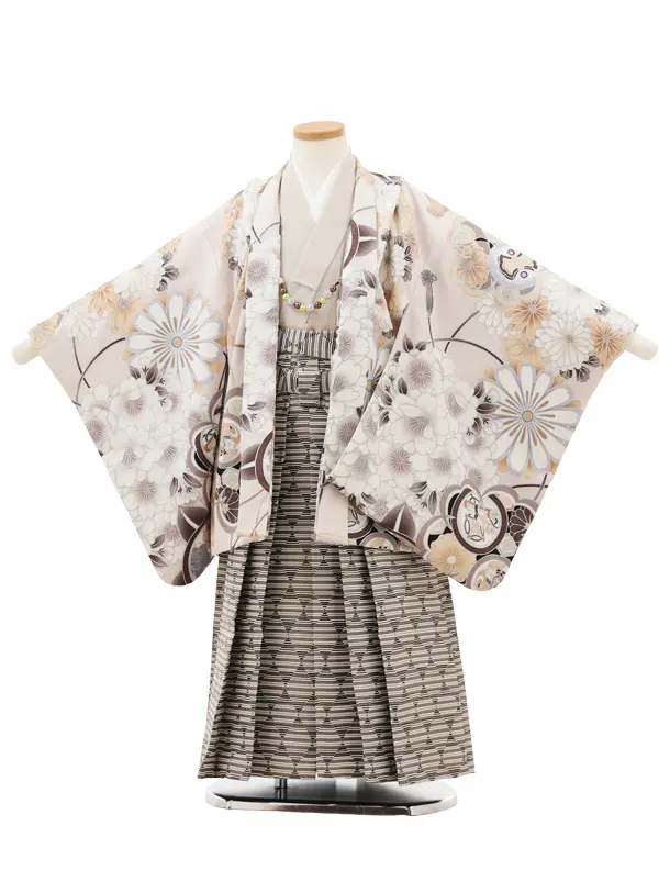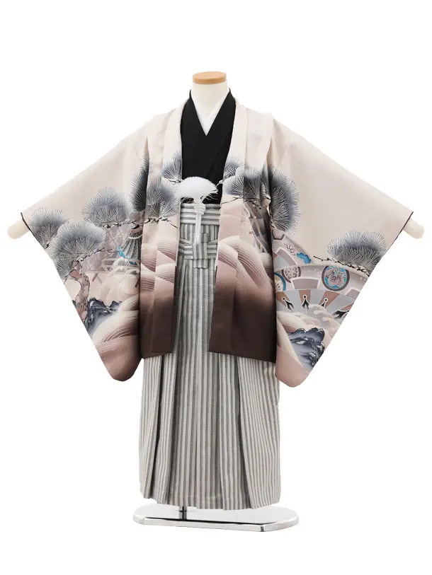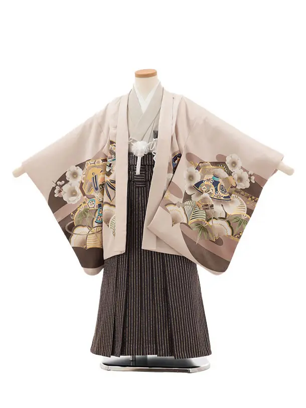 かんたん(5歳男袴)X824 ピンクベージュぼかし 松波兜×シルバーストライプ