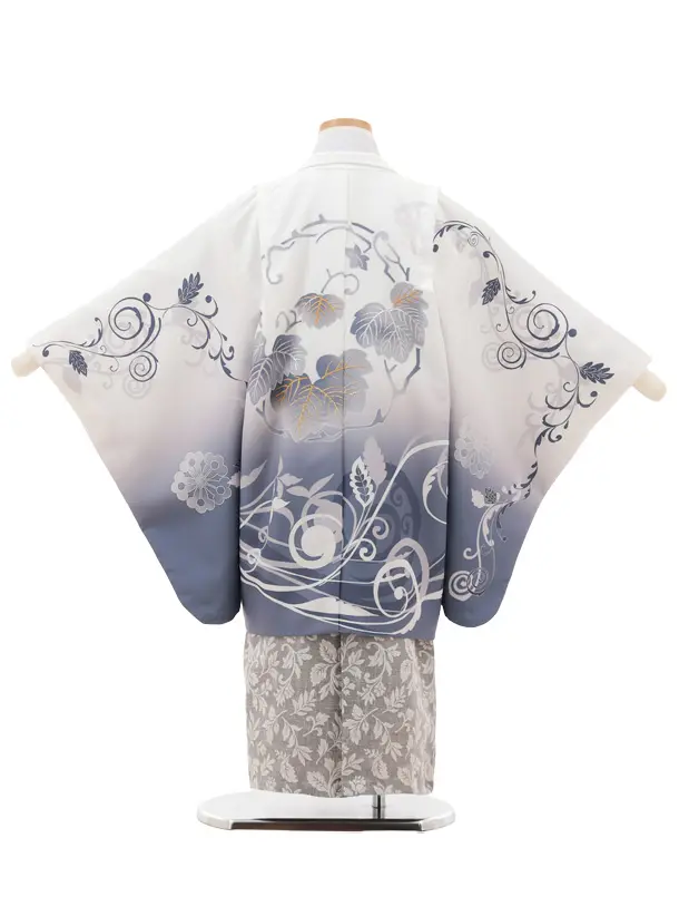 かんたん七五三(5歳男袴)X830 白ぼかし桐唐草×グレー