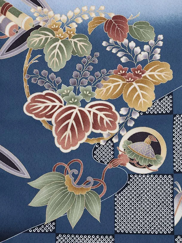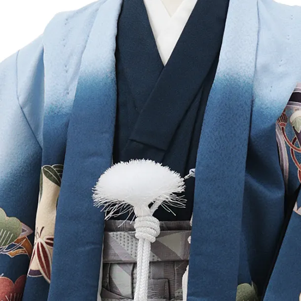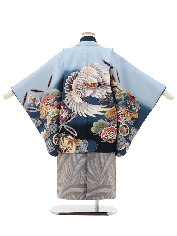 かんたん七五三(5歳男袴)X834 ブルーぼかし 白鷹×グレーパープル