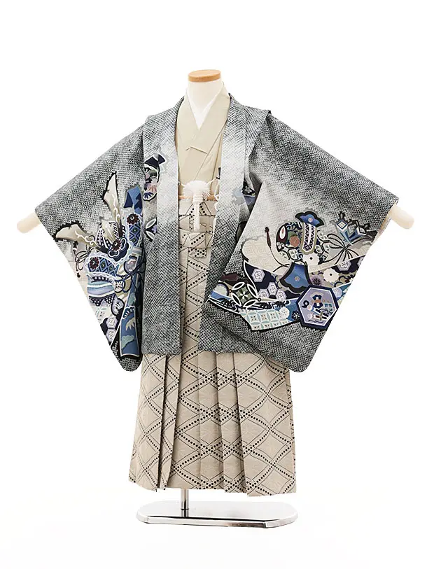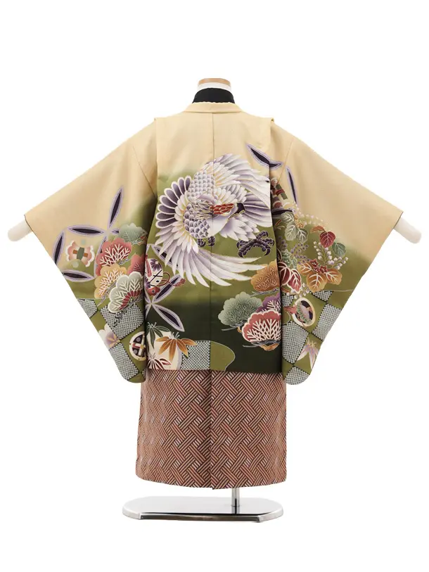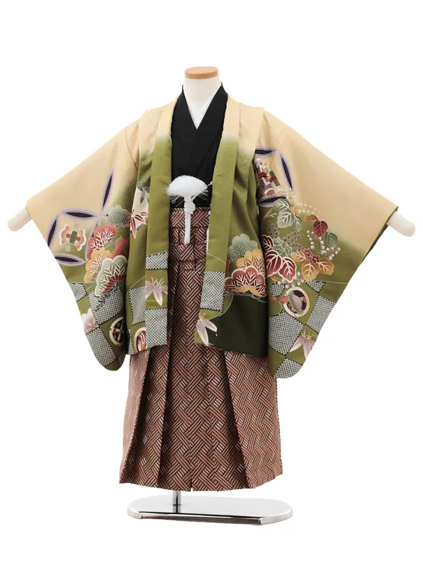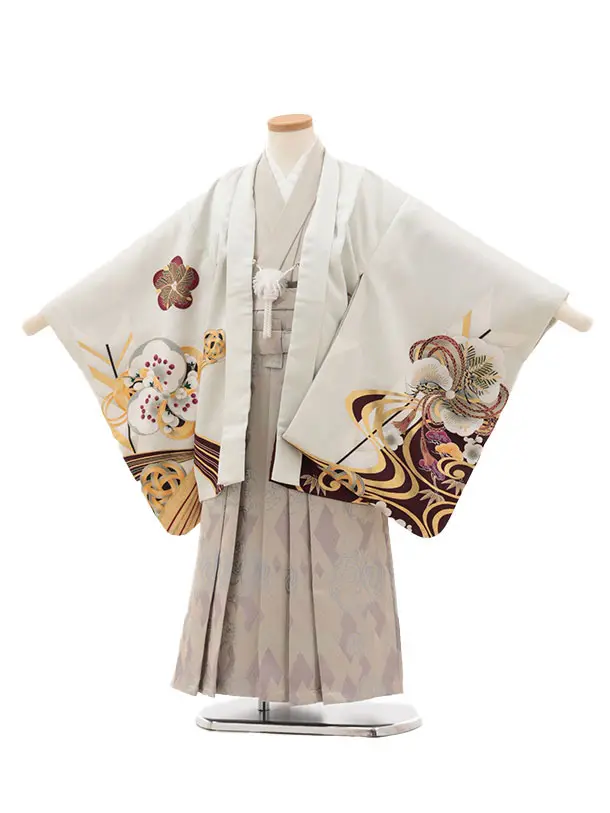 かんたん七五三(5歳男袴)X835 クリームベージュぼかし白鷹×ブラウン