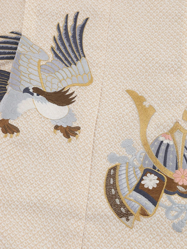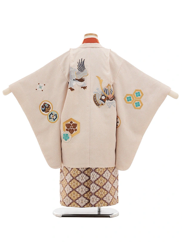 七五三(5歳男袴)X840 ベージュ疋田柄刺繍鷹兜×ベージュぼかし