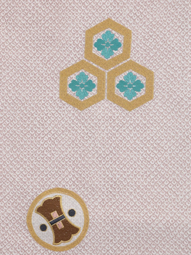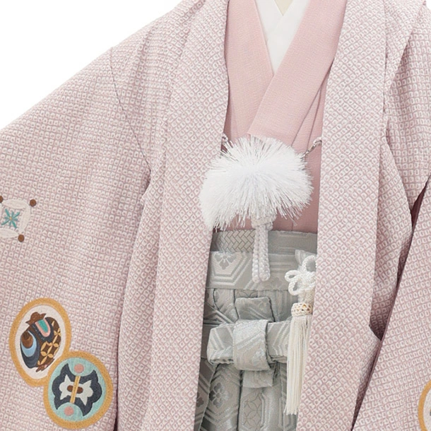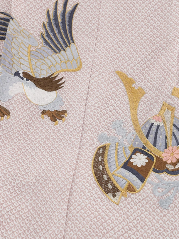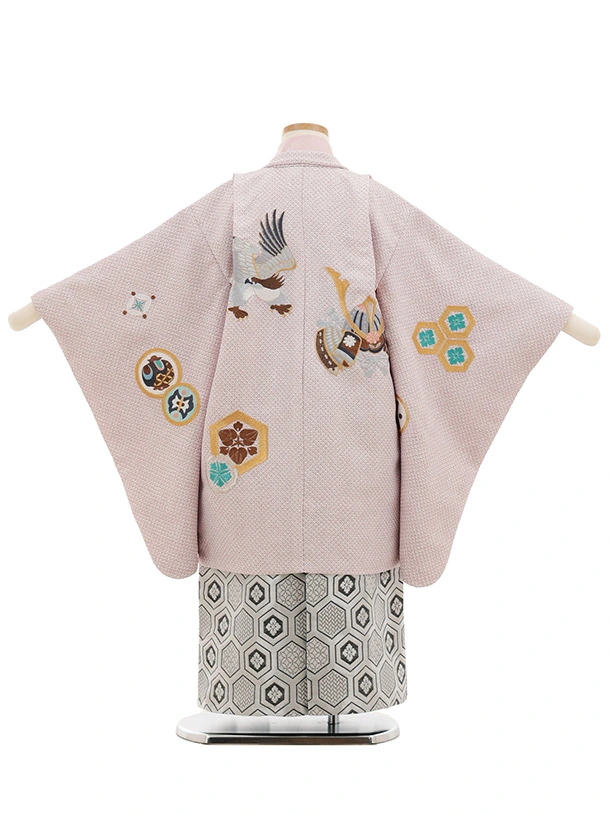 七五三(5歳男袴)X847 ピンクベージュ疋田柄刺繍鷹兜×シルバー亀甲