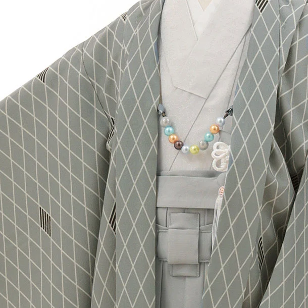 かんたん七五三(5歳男袴)X851 グレー菱×グレー