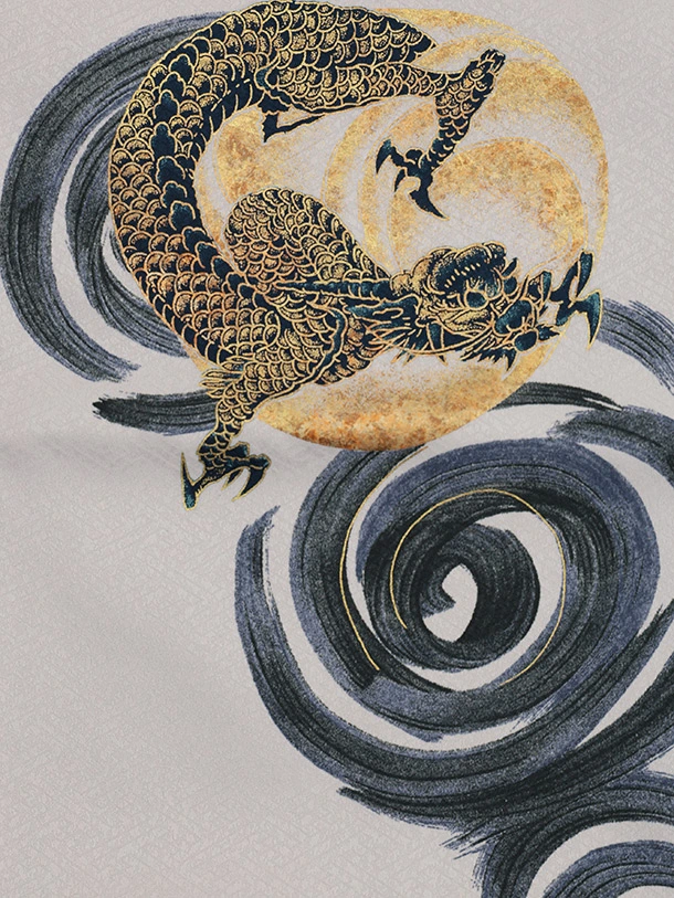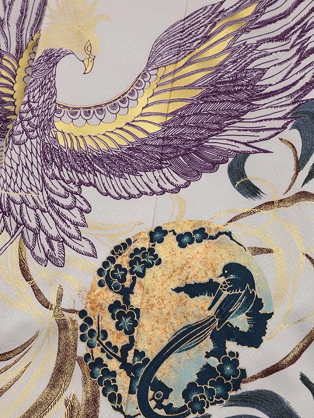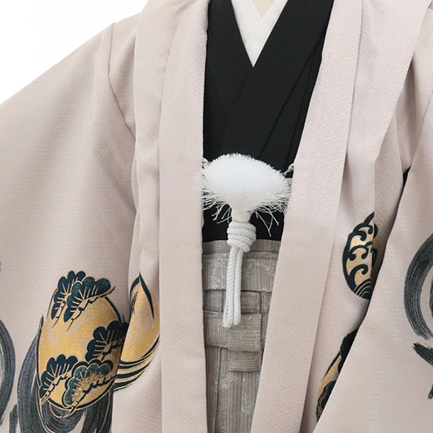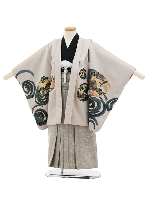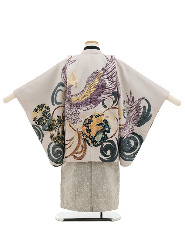 かんたん七五三(5歳男袴)X858 紫グレージュ渦に鳳凰×グレージュ