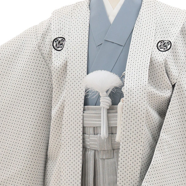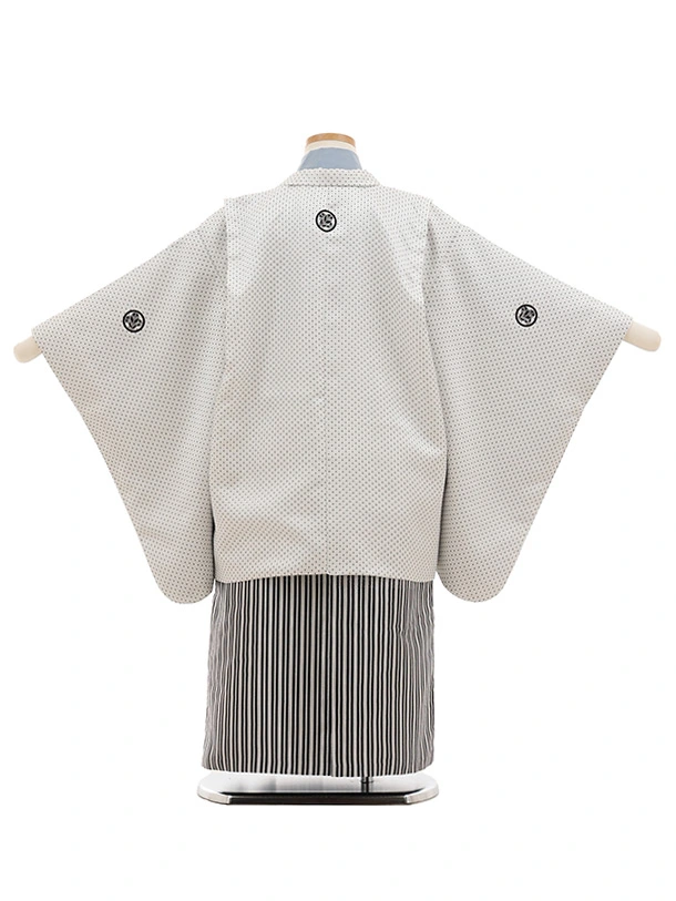かんたん七五三(5歳男袴)X862 白地刺し子紋付×銀縞ぼかし