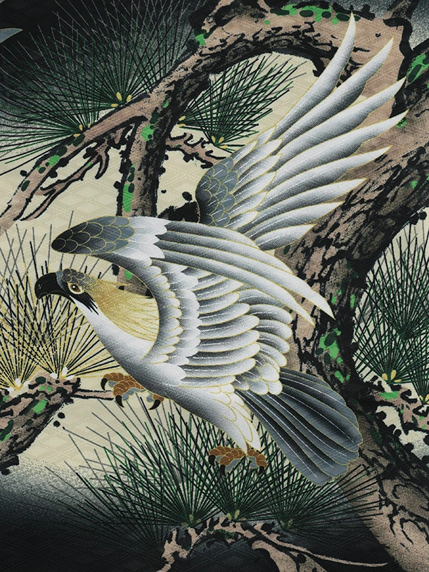 かんたん七五三(5歳男袴)X863 黒地松に鷹×黒縞