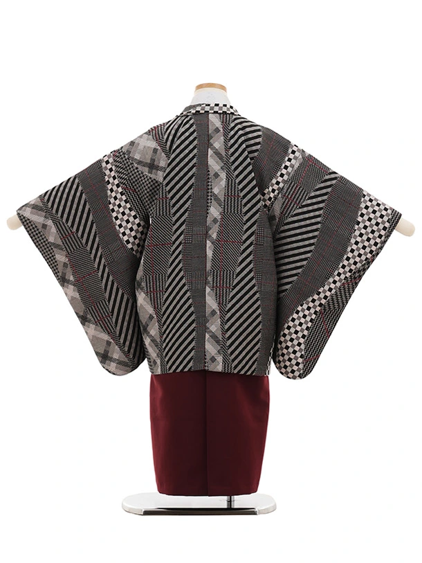 七五三レンタル(5歳男袴)X865 黒チェック×ボルドー