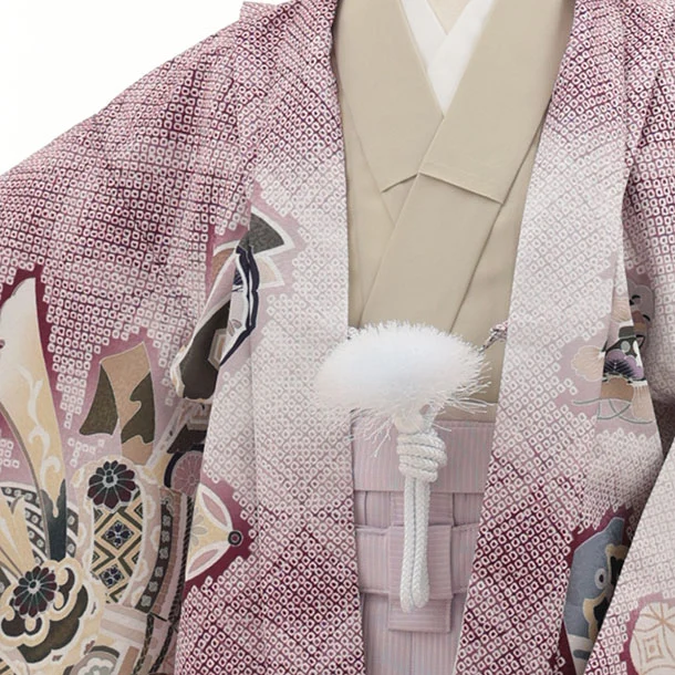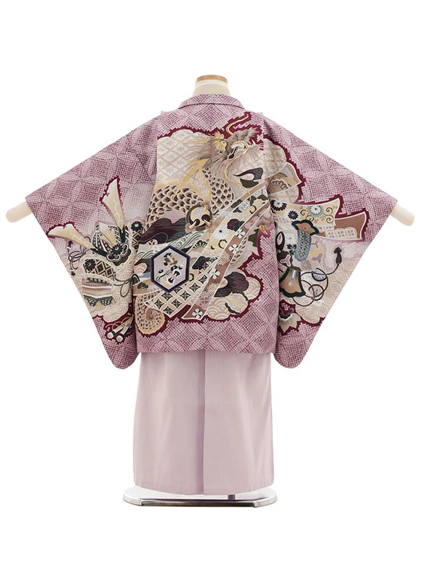 かんたん七五三(5歳男袴)X871 ボルドー疋田柄熨斗兜龍×ラベンダー
