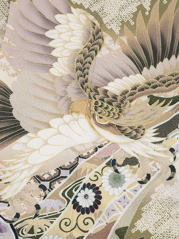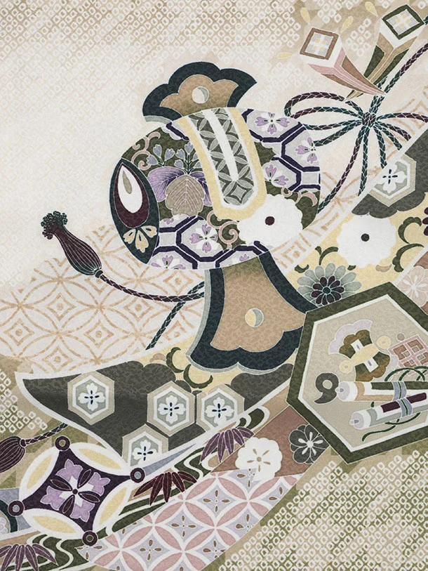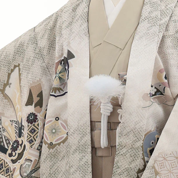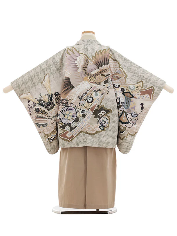 かんたん七五三(5歳男袴)X872 抹茶色疋田柄熨斗兜鷹×ベージュ