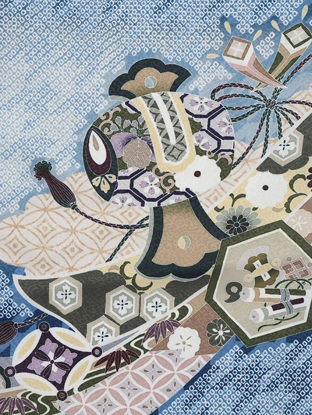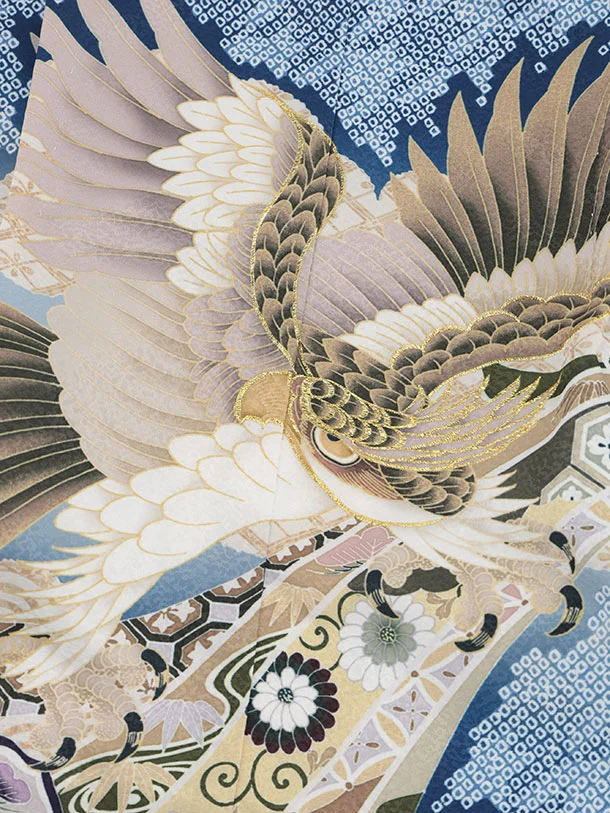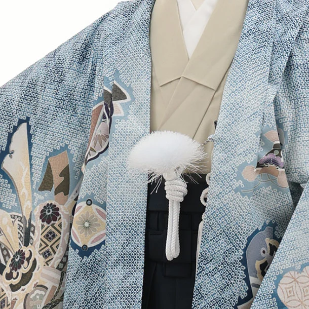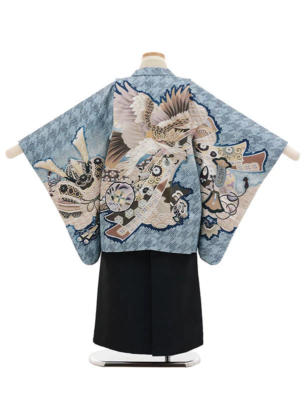かんたん七五三(5歳男袴)X874 ブルー疋田柄熨斗兜鷹×紺