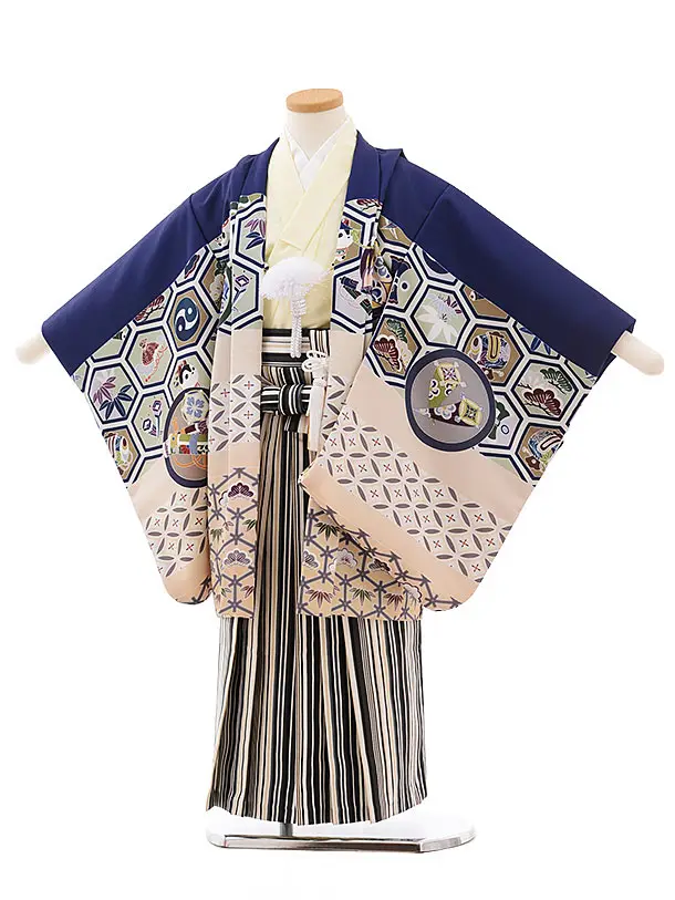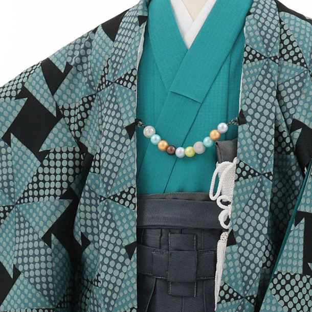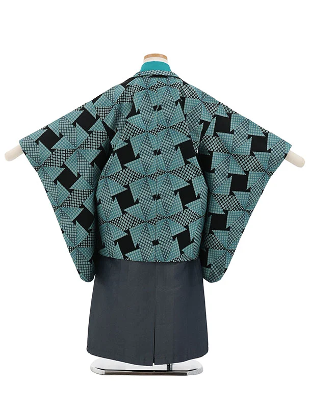 かんたん七五三(5歳男袴)X880 ブルーグリーン幾何学×ネイビーグレー