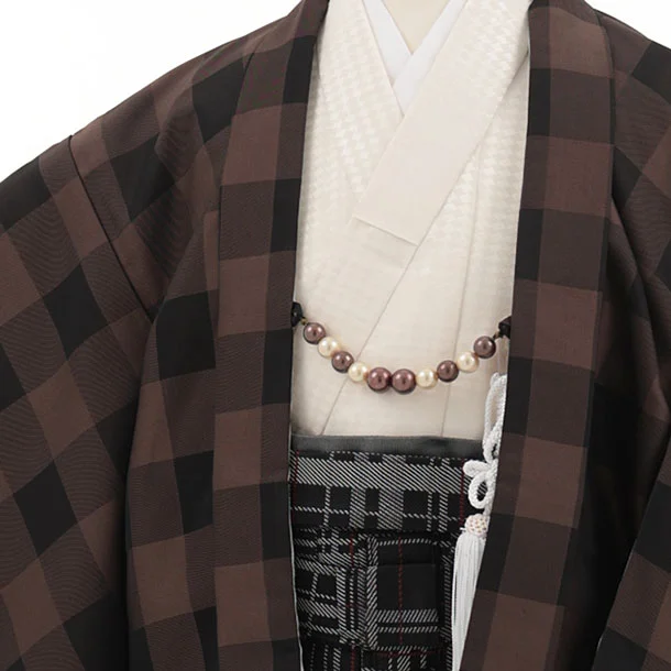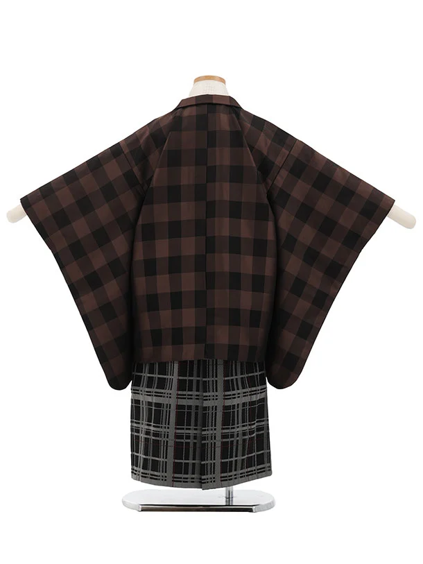 かんたん七五三(5歳男袴)X883 ブラウンチェック×黒グレーチェック