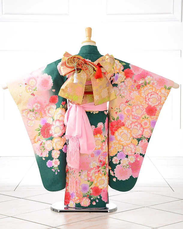 753レンタル(5歳女結び帯)0609グリーンピンク花