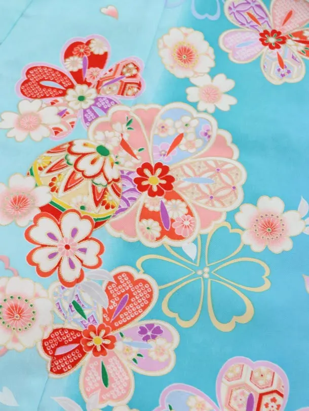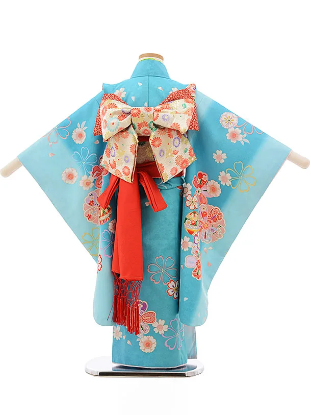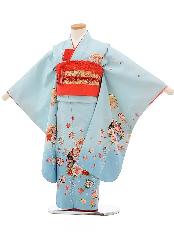 七五三レンタル(5歳女の子結び帯)0613 水色地 桜まり