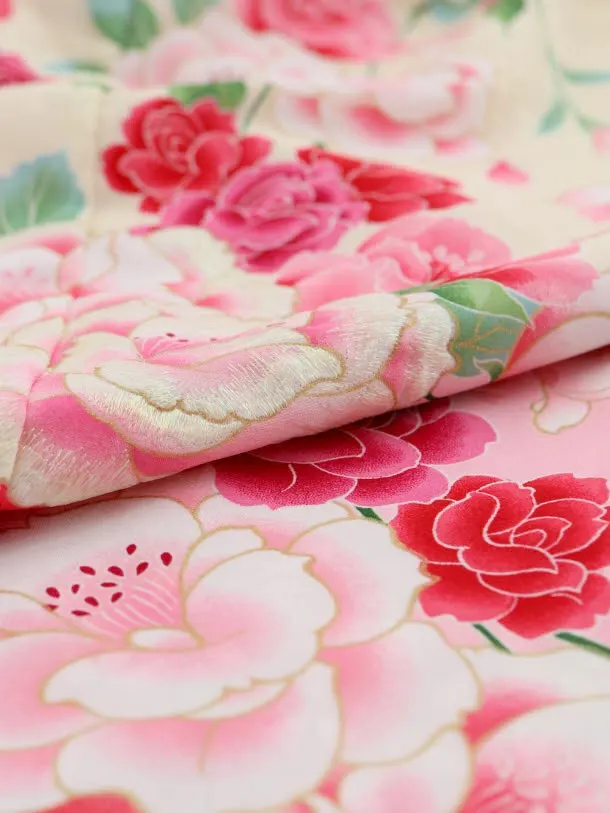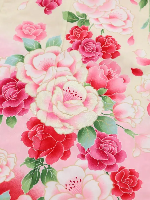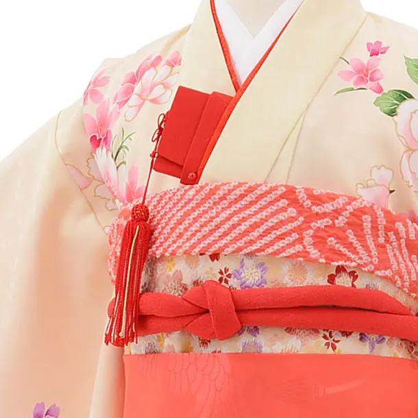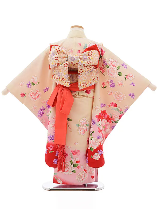 七五三レンタル(5歳女の子結び帯)0616 クリーム地 裾赤 花