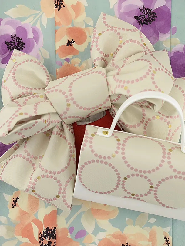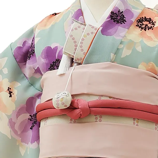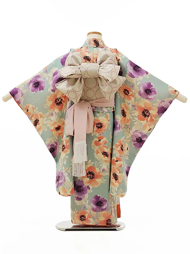 七五三(5歳女の子結び帯)0633 花わらべミントグリーンポピー