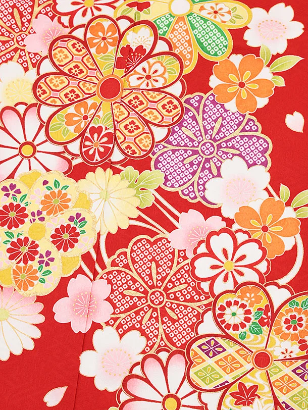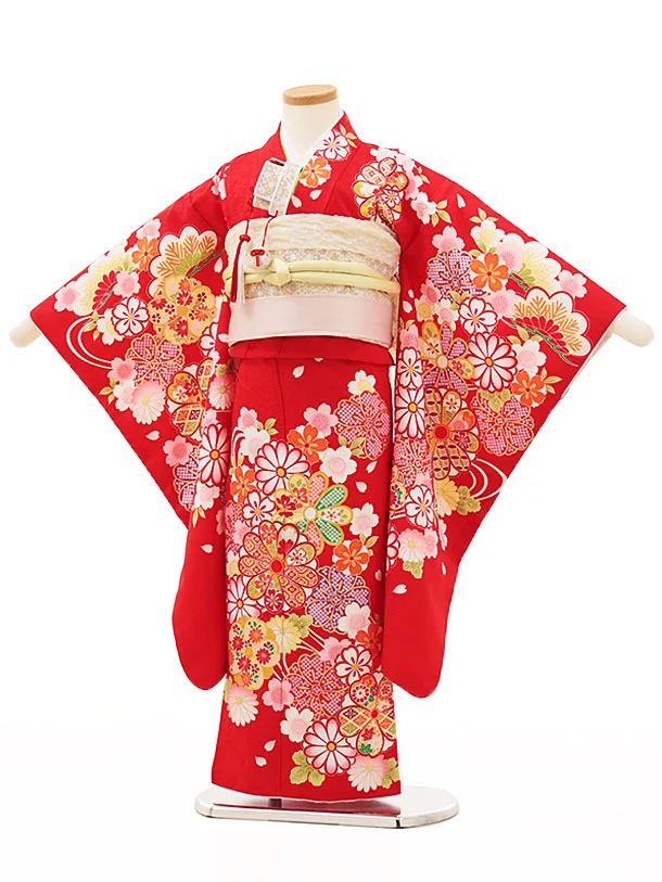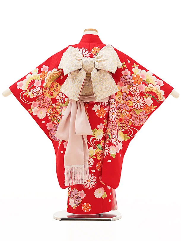 七五三(5歳女の子結び帯)0641 赤地 桜 菊