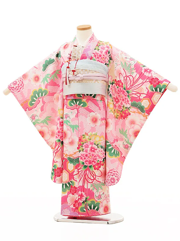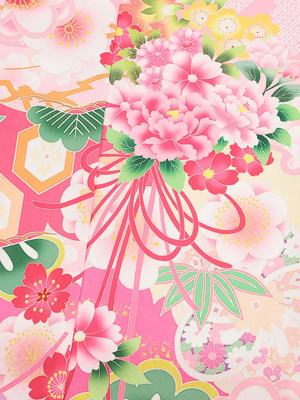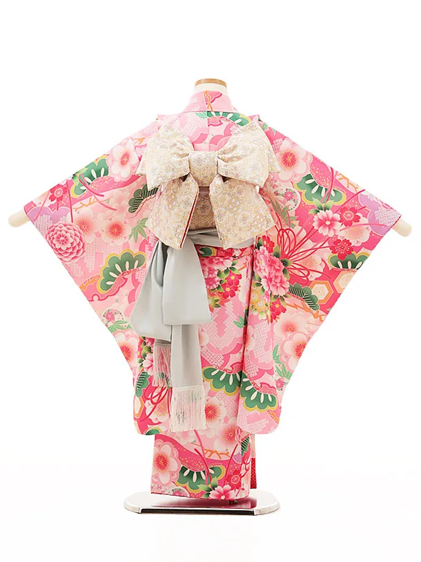 七五三(5歳女の子結び帯)0642 ピンク 梅に薬玉