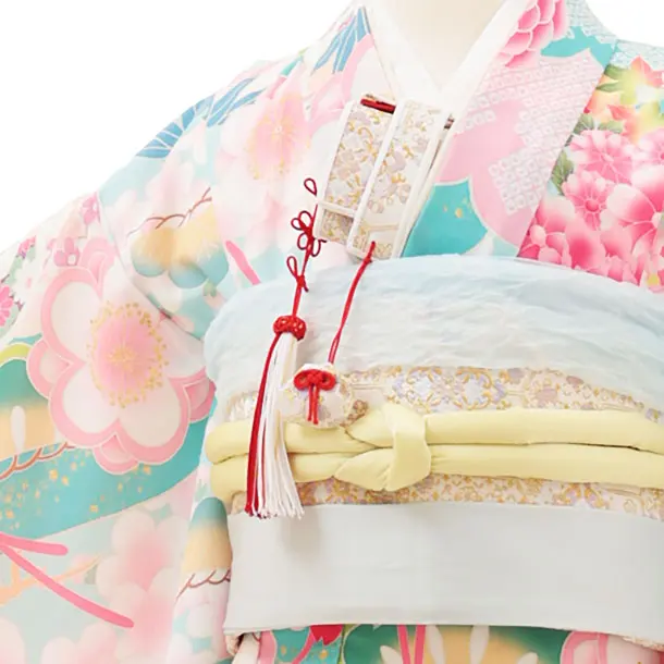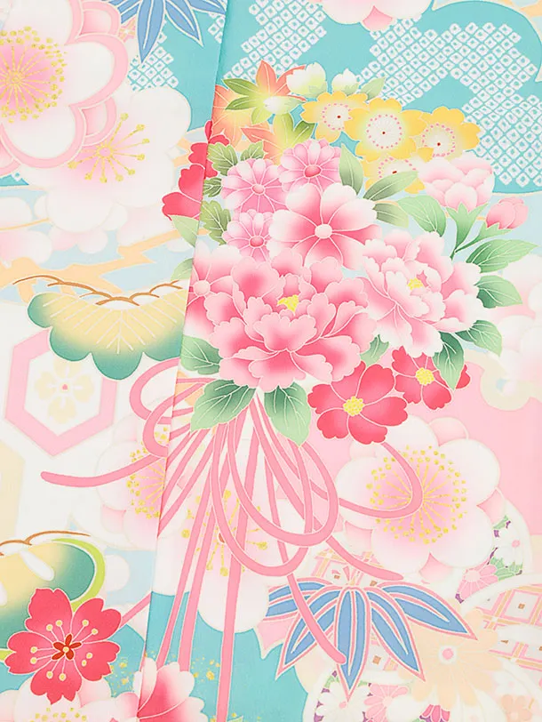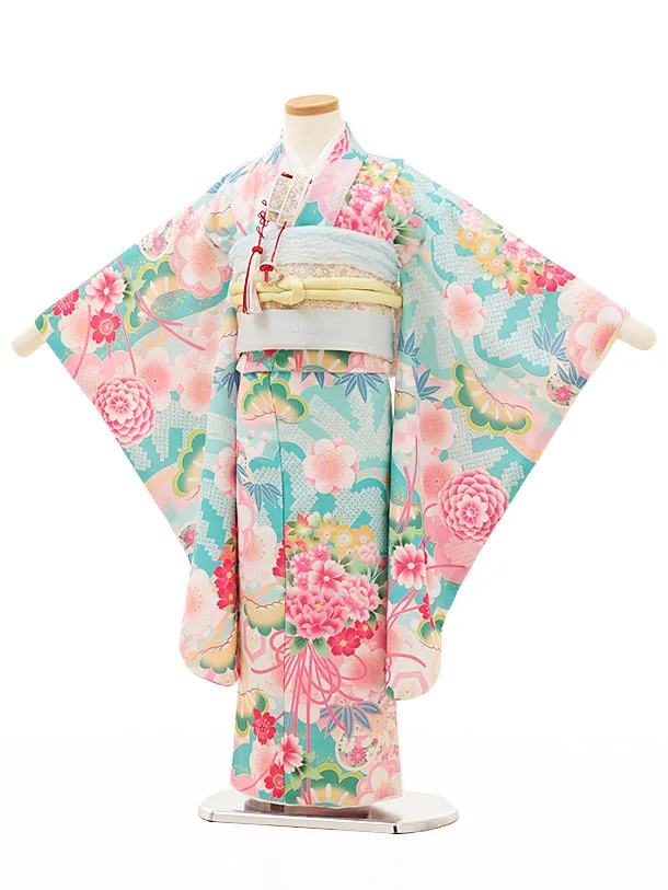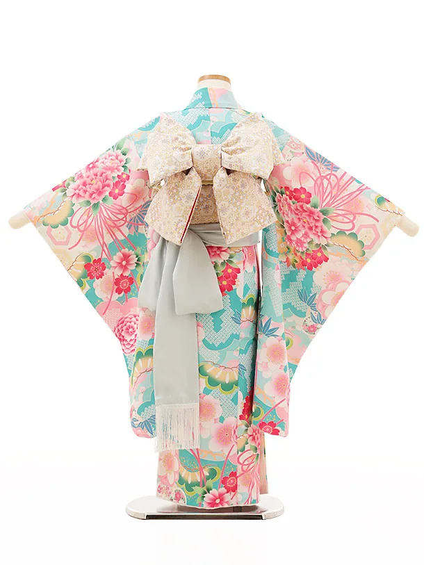 七五三(5歳女の子結び帯)0643 水色 梅に薬玉