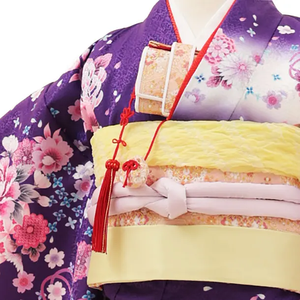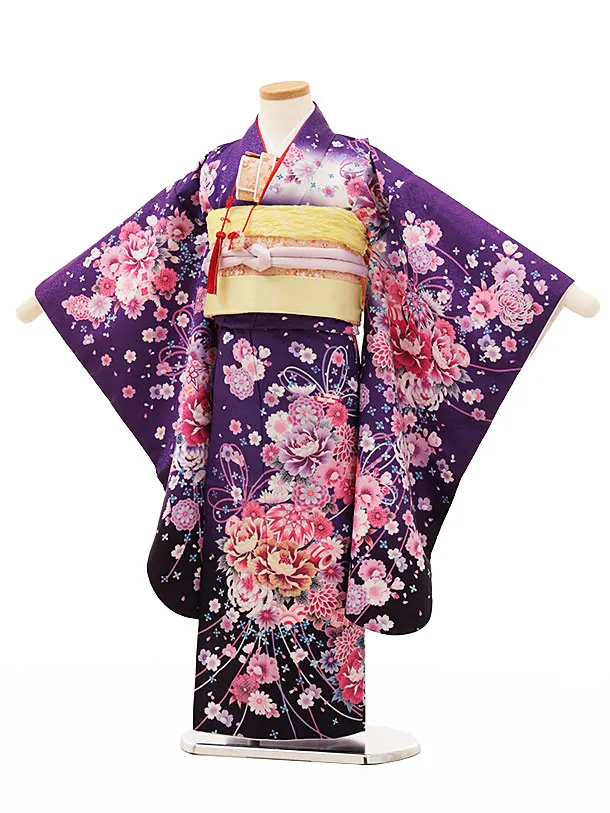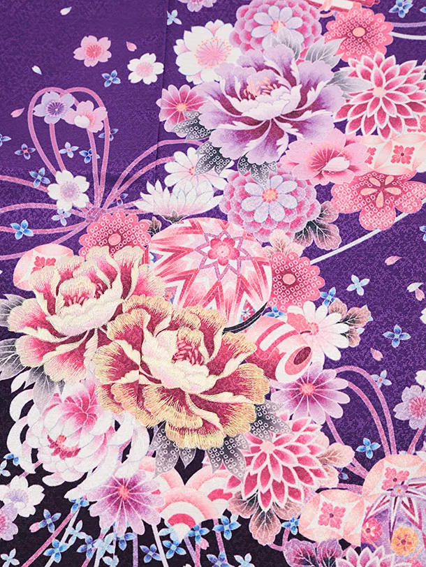 七五三(5歳女の子結び帯)0645 パープル まり 薬玉