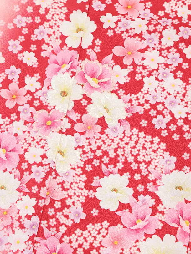 七五三(5歳女の子結び帯)0648 白赤ぼかし 花ちらし