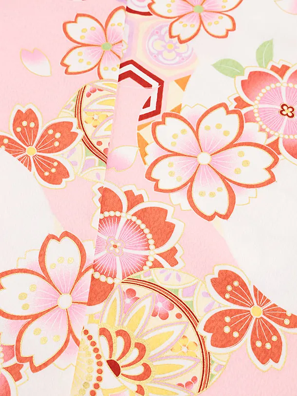 七五三(4歳・5歳女児結び帯)0652 白地 まり 桜