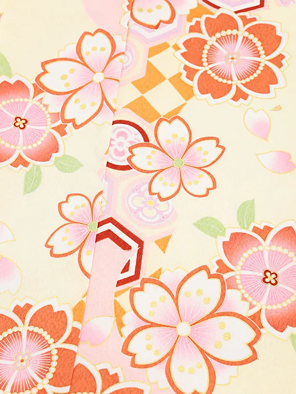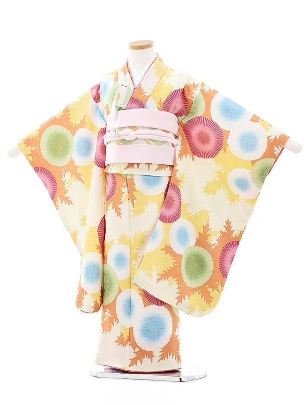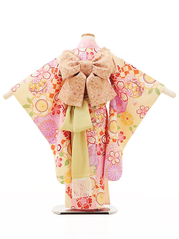 七五三(4歳・5歳女児結び帯)0653 うす黄色 まり 桜