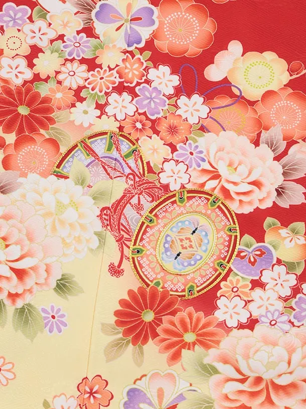 七五三(5歳女児)0670 赤 裾黄色 鼓に花