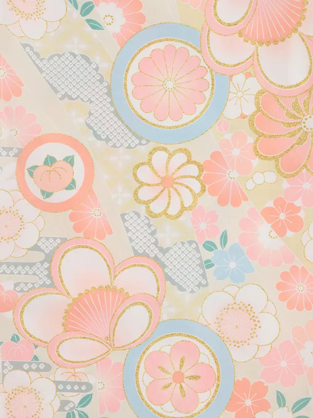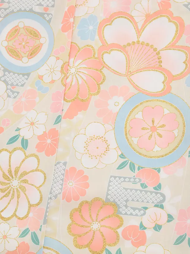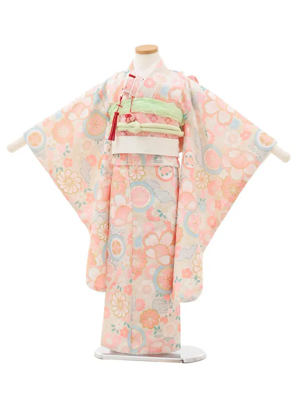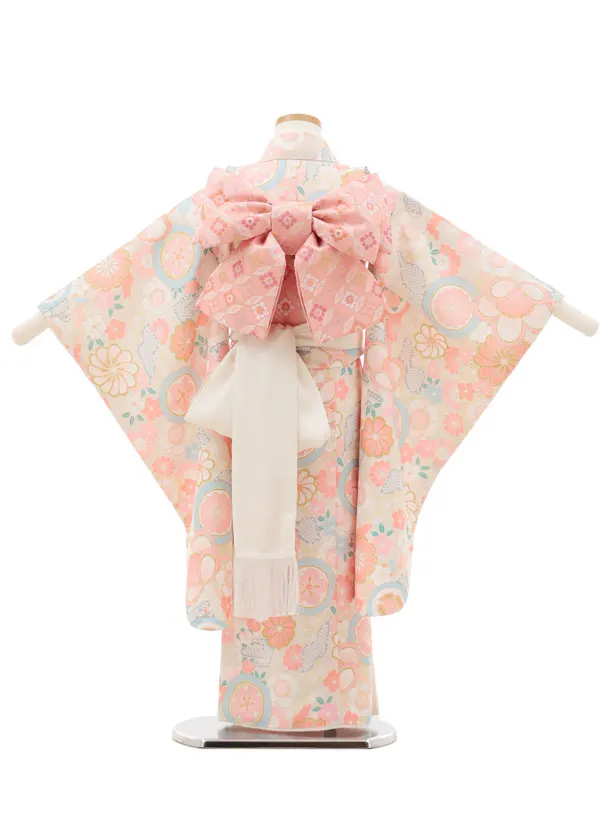 七五三(5歳女児)0674 ベージュピンク丸紋 ねじり菊