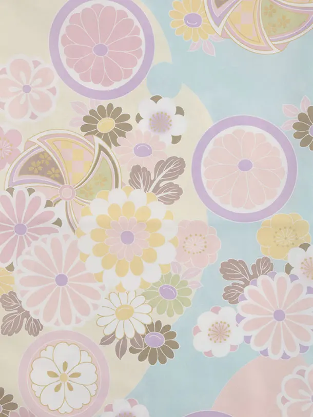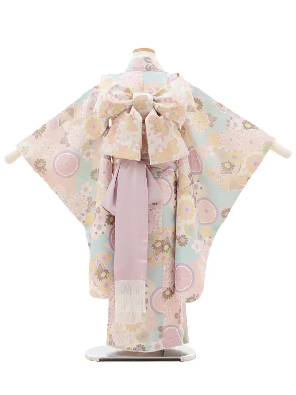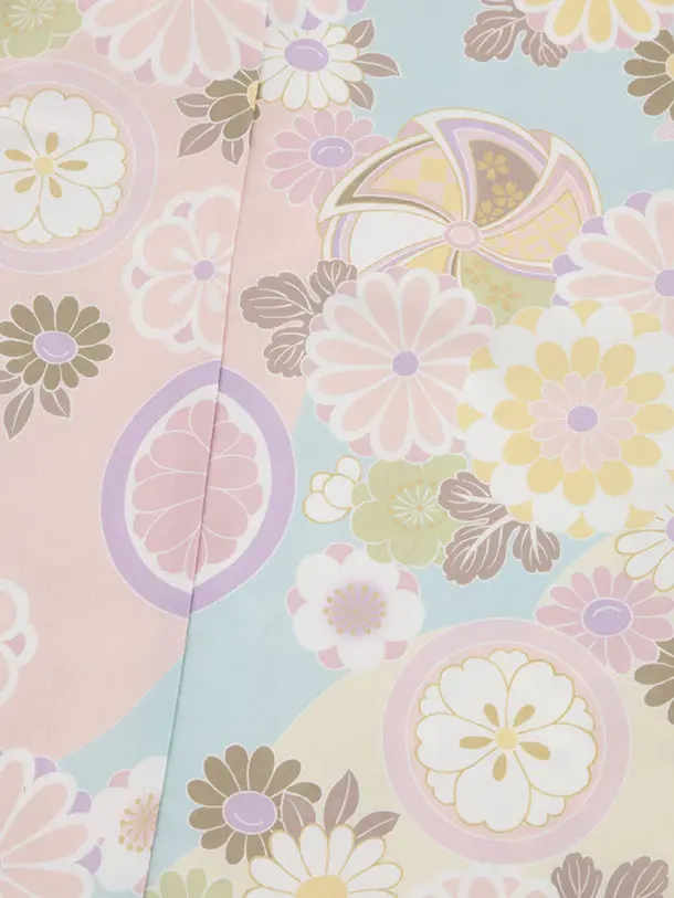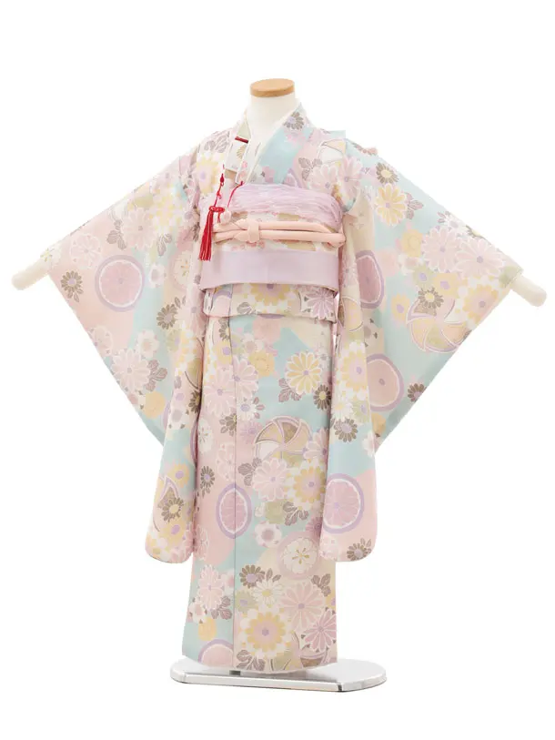七五三(5歳女児)0679 ペールブルーピンク丸紋 菊