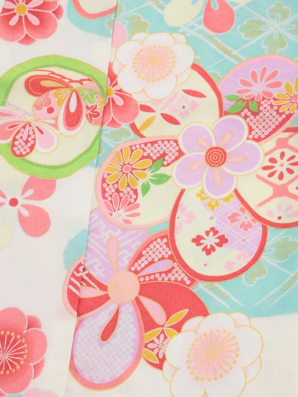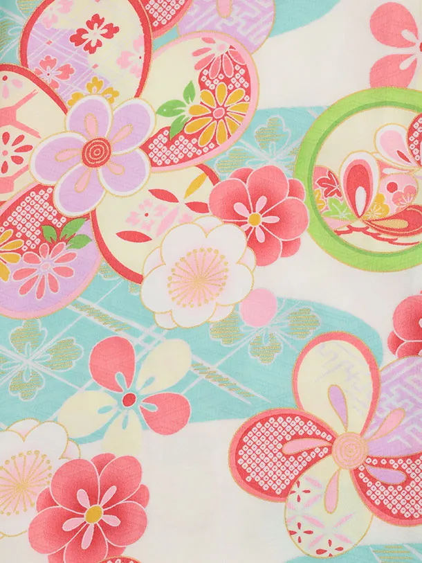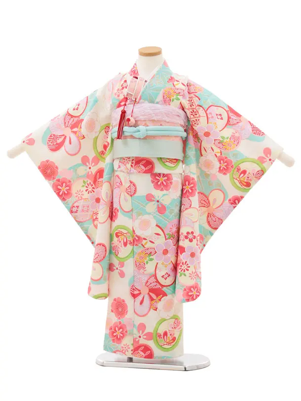 七五三(5歳女児)0680 クリーム水色丸紋 ねじり梅