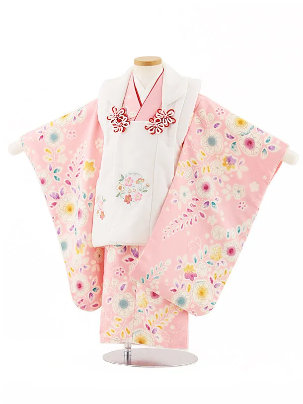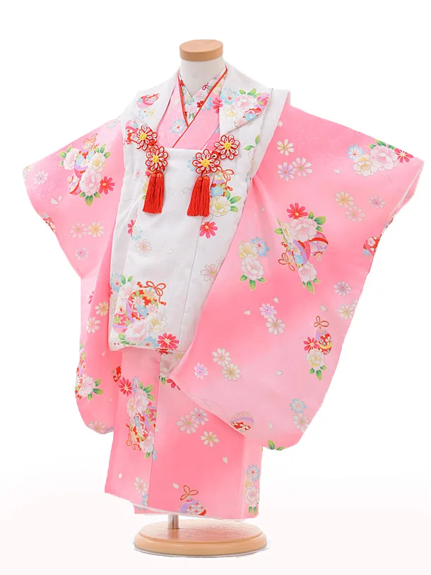 七五三レンタル(3歳女の子被布)3145白×ピンク花まり