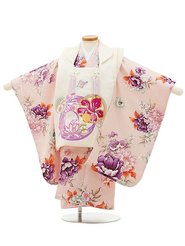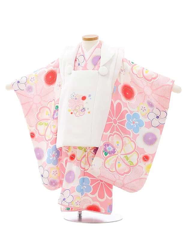 七五三レンタル(3歳女の子被布)3147ピンク花まり