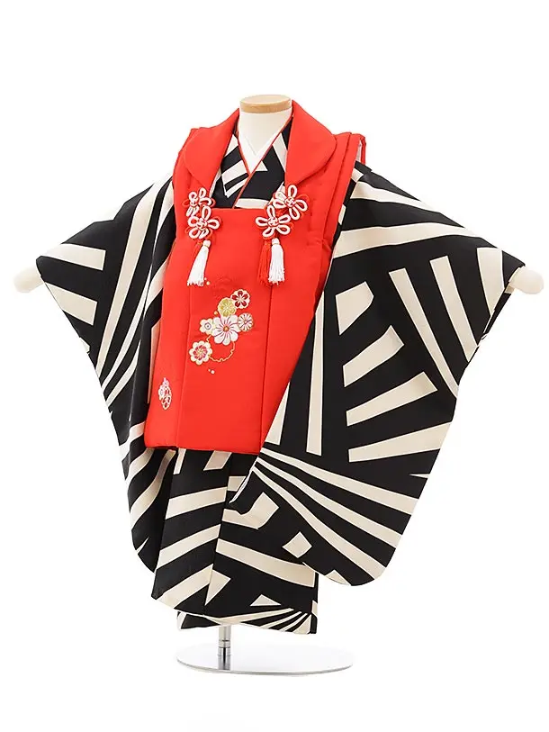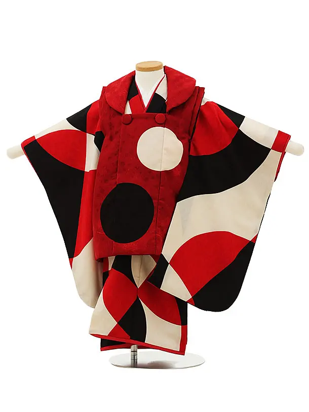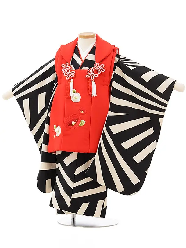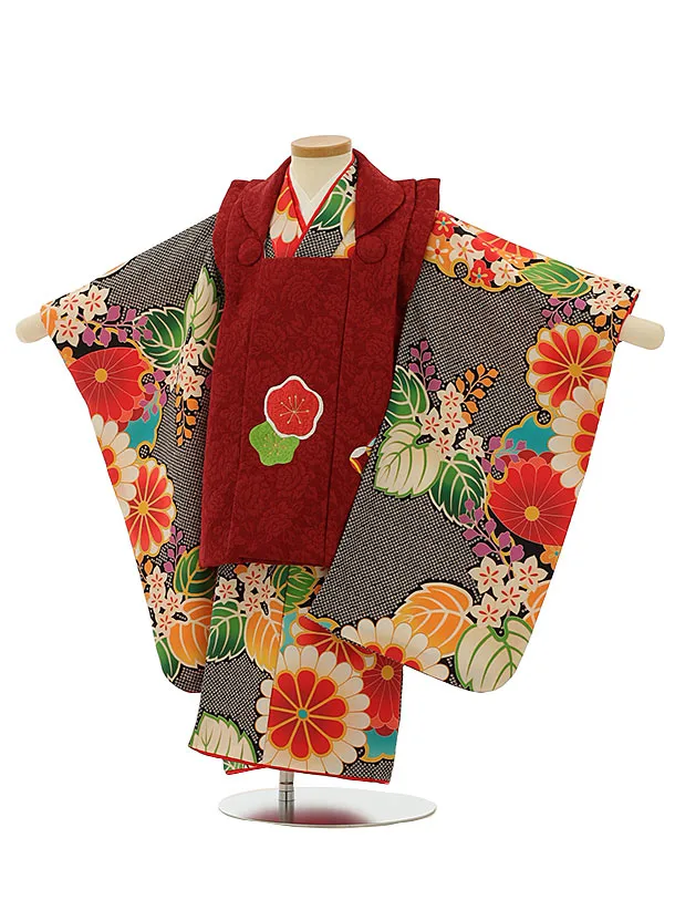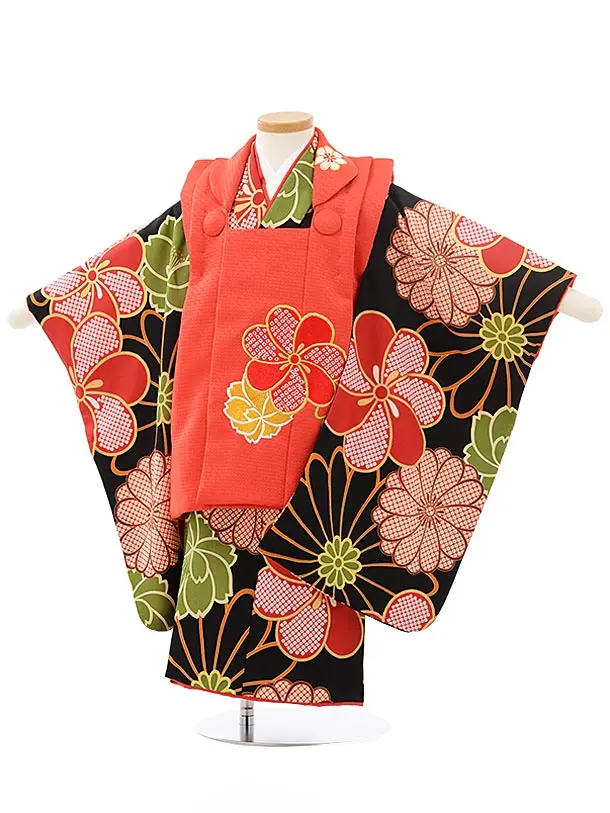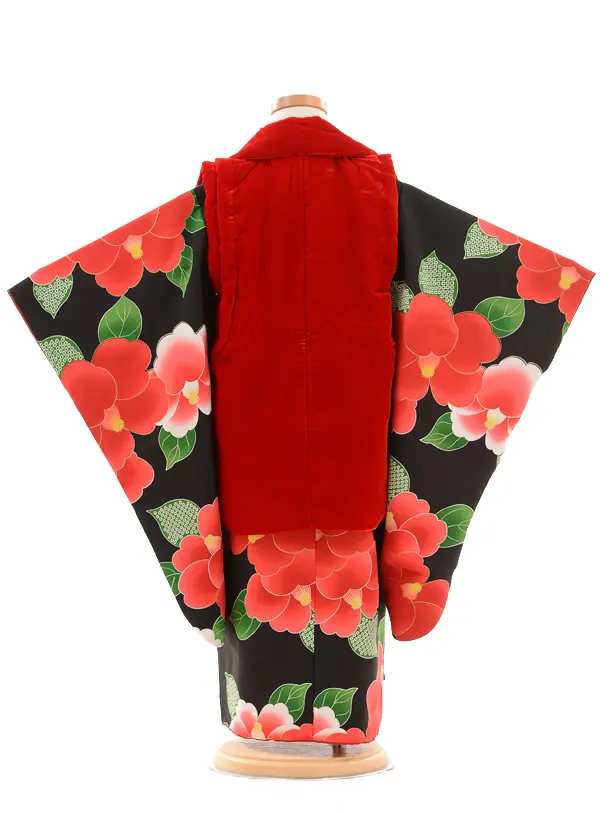 七五三レンタル(3歳女の子被布)3169赤ベルベット×黒椿