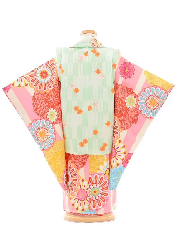 七五三レンタル(3歳女の子被布)3170花わらべ縞に紋菊/ピ