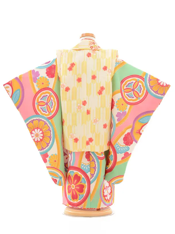 七五三レンタル(3歳女の子被布)3171花わらべ立桶に丸紋/