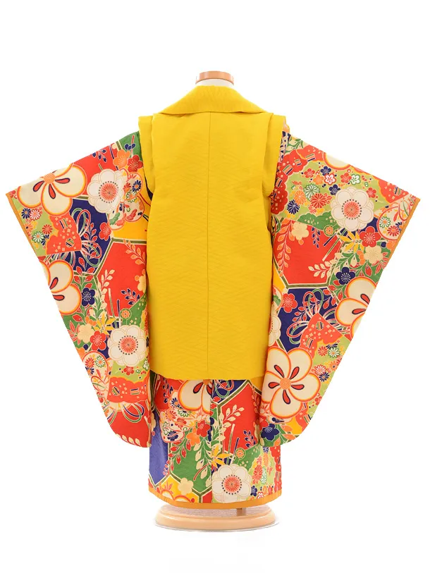 七五三レンタル(3歳被布)3173九重黄色疋田菊