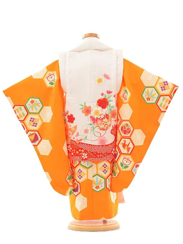 七五三レンタル(3歳女の子被布)3185和がまま白×オレンジ