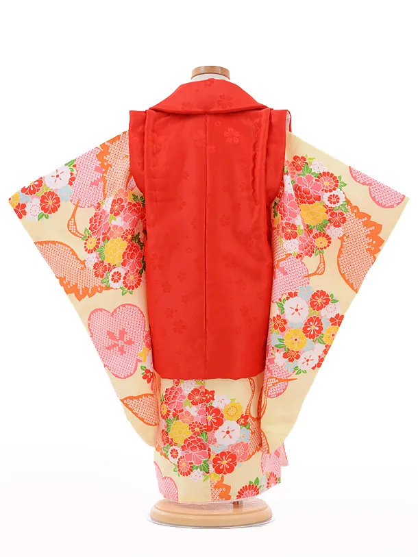 七五三レンタル(3歳女の子被布)3214小町kids赤×黄色鶴